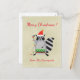 Um cartão postal com um guaxinim giro vestindo um chapéu vermelho que segura algumas luzes de natal. Preparando-se para decorar sua casa. Feliz Natal escrito em fonte vermelha de rico. Personalize com seu nome na frente. Uma mensagem na parte de trás que você pode personalizar ou deixar como está.
