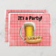 Caneca de cerveja e cachorro-quente com gingham vermelho e branco para convite para festa de CHURRASCO.