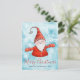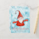 Crie cartões postais de Natal bonitos personalizados com saudações de Feliz Natal e gnomo alegre em roupas vermelhas festivas em um fundo azul-neve. O texto modelo facilita a personalização. Feliz Feriados!