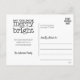 Uma fazenda azul com uma coroa de morango como fotograma. Um roteiro moderno é usado para os feriados felizes. Uma saudação de Natal - Que os seus dias sejam felizes e brilhantes - incluída no lado do cartão postal com uma área para assinatura e saudação familiares.