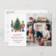 Cartão-postal de Natal Feliz, Foto Moderna. Este cartão postal de festas felizes, bonito e único, do quebra-cabeça de feriado, apresenta soldados de brinquedo nutcracker pintados à mão em torno de uma bela árvore e texto para adicionar seu nome de família e ano. O verso inclui um texto para personalização. Localize itens correspondentes na Coleção de Nozes Feriados de Natal.