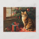 Cartão Postal De Festividades Gatinho de Natal na Janela