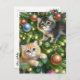 Cartão Postal De Festividades Gatinhos bonitos na árvore de Natal