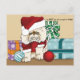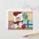 Um gato branco fofo vestindo um fato papai noel e não está muito feliz com isso.
