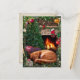 Cartão Postal De Festividades Gato Dormindo ao lado da Lareira no Natal