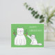 Um gatinho branco e fluffy, com bolhas na ponta, é bigode, com um gatinho branco com uma das bolhas. A imagem é feita contra um fundo verde de ervilhas e é acompanhada do texto "Feliz Natal".