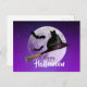 Cartão Postal De Festividades Gato Negro Halloween na Lua Cheia
