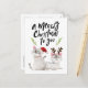 Cartões postais de Natal bonitos e engraçados com ilustração de dois gatos siameses vestindo um chapéu e chifres de santa. O texto da tipografia acima diz "um doce natal para você." A mensagem editável no verso diz "Desejando-lhe uma maravilhosa temporada de férias cheia de leite quente e longas sonecas de gato!"