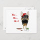 German shepherd tentando se livrar de comer todos os cookies dos Papais noeis. German shepherd está vestindo um Papai Noel, com um homem de pão de gengibre na boca com legenda que diz: "Ho... Ho... Como???"