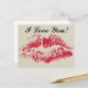 Faça-o ficar corado com este Grande Beijo Vermelho para o Cartão-Postal de Feriado de Dia de os namorados. É um design moderno com um grande beijo vermelho de batom na frente da carta com cinza clara. O texto é "Eu te amo" na letra do escrevendo de mão negra.