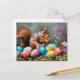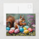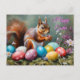 Cartão Postal De Festividades Happy Easter Squirrel with Easter Eggs, Flowers