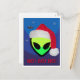 Hei! Hei! Dos aliens! é uma design de trabalho de arte branca com uma alienígena vestida de Papai noel e desejando feliz!