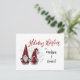 Cartões postais de feriado, no estilo russo, com "Holiday Wish" em script de caligrafia em na moda, e seus nomes personalizados. Este design único tem um casal genoma em roupas de verificação de xadrez de búfalos vermelhos com chapéus de gnomo de feriado e acentuado com estrelas de prata de cor d'água. A parte traseira do cartão contém espaços de texto para sua mensagem de feriado personalizada, nomes e o ano.