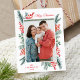 Cartaz de feriado elegante com sua foto favorita na frente, emoldurada por groselhas de cor vermelha, com ramos de pinheiro verde e folhagem. "Feliz Natal" aparece no topo num elegante roteiro de caligrafia vermelha. Personalize a frente do cartão postal de feriado botânico adicionando seu nome e o ano. O belo cartão postal reverte para apresentar o seu endereço de retorno e a mensagem personalizada. Projetado para coordenar com nossa coleção de feriados Holly e Evergreen.
