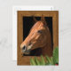Belo cavalo sai de uma banca de madeira com folhagem de férias amantes de cavalos de folhagem de Natal