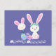 Uma ilustração bonita e adorável com coelhos e ovos coloridos de Páscoa em pastéis em fundo de panela. Envie este cartão postal de férias aos seus amigos e familiares para lhes desejar uma Felz pascoa ou convidá-los para uma caçada de ovos de Páscoa cheia de graça. Personalize a mensagem modelo na parte traseira da placa com seu próprio texto e adicione seu nome a ela. Você pode alterar as fontes, os tamanhos de fonte e a cor, bem como a cor de fundo do cartão postal. Feliz, Páscoa esperta!
