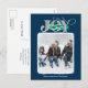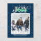 Cartão Postal De Festividades JOY FESMENT Blue Modern Script Foto de Natal