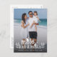 Cartaz de fotos de tipografia moderna apresenta foto de solteiro, roteiro de tipografia Mele Kalikimaka em letras de natal tradicionais, nome de família e um ano. Um cartão perfeito, elegante e simples para desejar feriados felizes à sua família e amigos.