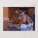 Cartão Postal De Festividades Meowy Gatinho de Natal em uma caixa de presentes