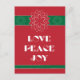 Cartão Postal De Festividades Mínima Poinsettia Vermelha com Amor, Paz, Alegria