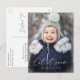 Mande o festejo de inverno com este cartão postal Let It Snow, com a sua foto vertical favorita, bordada por delicadas flores de neve. "Let It Snow" é apresentado num guião de caligrafia branca com o nome da sua família por baixo. O verso inclui seu endereço de retorno e a mensagem de feriado personalizada, fazer uma maneira simples, mas elegante de compartilhar saudações festivas.