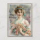 Cartão Postal De Festividades Mulher Vitoriana com Rosas em Fundo de Aquarela