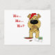 Airedale Terrier que tenta obter afastado com comer todos os biscoitos do papai noel. Airedale está vestindo um chapéu do papai noel, com o homem do pão do gengibre em sua boca com subtítulo que lê, "Ho… Ho… Ho???"