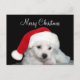 Filhote de cachorro de Bichon Frise em um cartão do Natal da foto do chapéu do papai noel. O texto pode ser mudado ou removido com o botão da PERSONALIZAÇÃO