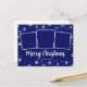 Celebrar as festas com este elegante e mínimo cartão postal de Natal com roteiro moderno e flocos de neve em azul e branco. Substitua facilmente as fotos por suas próprias e personalize a saudação festiva como preferido, e também use a opção de adicionar uma mensagem pré-impressa no verso.