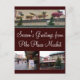Cartão que caracteriza fotos do mercado de lugar de Pike no Natal. O texto customizável lê da "os cumprimentos estação do mercado de lugar de Pike"