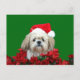A jovem corça e o cão branco de Shih Tzu no papai noel chapéu e poinsétias perseguem o cartão do Natal da foto dos amantes