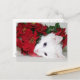 Gatinho branco de olhos azuis, cabelos compridos brinca com a decoração de natal foto cartão de Natal