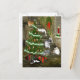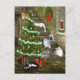 Os gatos múltiplos penduram ao redor uma árvore de Natal na forma típica do gato, 2 gatos malhados de prata, um gato malhado alaranjado, preto e branco, branco, por muito tempo e cartão de cabelos curtos do feriado dos amantes do gato