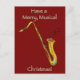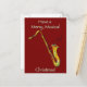 Cartão TemplateIllustration vertical de um saxaphone com notas da música.