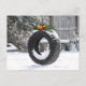 Memórias nostálgicas de Natal do país com um velho balanço de pneus pendurado num membro da árvore e coberto de neve com uma coroa decorativa que lembra um cartão postal de Natal mais simples
