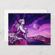 Cartão Postal De Festividades Noite azul do astronauta da menina do cabelo