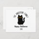 Cartão Postal De Festividades Nome Personalizado de Gato Preto Assustador do Hal