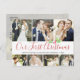 Mostre suas fotos de feriado e seu casamento recente com este cartão de colagem de fotos de feriado na moda que diz "Nosso Primeiro Natal" em um roteiro de caligrafia vermelha na moda e nosso sotaque de cor d'água pintado à mão. Perfeito para o casal recém-casado usar como anúncio de casamento ou cartões de agradecimentos em torno dos feriados. Adicione seu próprio sentimento atrás.
