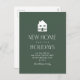 Envie um aviso e um cartão de feriado em movimento. Este cartão-postal na moda apresenta uma ilustração caseira juntamente com "nova casa para os feriados" e a sua mudança de endereço num fundo verde clássico. A parte de trás deste cartão postal de anúncio em movimento de feriado tem um espaço para uma foto opcional, texto adicional e um nome ou nomes de script. As costas também podem ser vazios. Este design original faz parte de uma coleção de Lea Delaveris Design, onde você pode encontrar mais cartas, guardas e cores adicionais também.