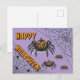 Envie um sorriso assustador nesta estação com este cartão postal "Feliz Halloween", com quatro aranhas lúpinheiras lúpkin lúdicas em tamanhos variados, rodeadas de sotaques cobweb em cantos opostos. Uma mistura perfeita de assustador e fofo, é ideal para enviar saudações festivas, convites para festas ou adicionar um toque de charme de Halloween à sua decoração.