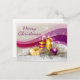 Enviou seus desejos calorosos para sua família e amigos com este lindo cartão postal de Natal com ouro e velas vermelhas, caixa de presentes de bolas de Natal ouro e roxo com agulhas de arco e pinheiro em tons brancos e bonitos de fundo roxo.