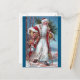 Um cartão postal de natais vintages encantador, que mostra o Pai Natal a caminho da neve carregada de brinquedos e de uma árvore de abeto.