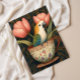 Cartão Postal De Festividades Papagaio em Teacup com Tulipas