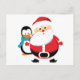 Cartão Postal De Festividades Papai Noel E Pinguim Bonitos
