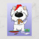 Tentamos escapar comendo todos os biscoitos de Papai noel. West Highland White Terrier está vestindo um Papai Noel, com pães de gengibre na boca.