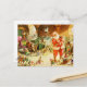 Cartão Postal De Festividades Papais noeis e seus Elfos nos estábulos do Polo No