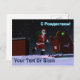 Chocolate quente para véspera de Natal. O Papai Noel (Д е М о р о дз) é visto no telhado de uma casa depois de entregar presentes. As luzes de navegação vermelhas e verdes do seu trenó estão refletidas na neve do telhado, e a placa pessoal do Polo Norte dos Papais noeis está visível. O texto cirílico que lê "S Rozhdestvom" (С Р ж д е т с в о мо - Uma saudação de Natal russa) aparece em azul e branco brilhantes junto com um lugar para o seu próprio texto.