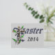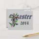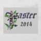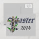 Esta design apresenta "Páscoa" com o "E" envolto na cruz de madeira. Os lírios estão numa vinha com folhas verdes subindo a cruz. 2014 é impresso neste design. O design do cartão-postal tem um plano de fundo de cinza.