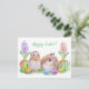 Cartão Postal De Festividades Páscoa Owl e Bebê Coelhinho