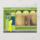 Cartaz charmoso de uma caminhada tranquila sobre um compro verde.